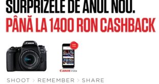 Pregătește-te pentru surprizele de anul nou. Până la 1400lei cashback la Canon Winter Cashback 2017 la F64 Perioada campaniei: 27 noiembrie 2017 – 31 ianuarie 2018 Vezi AICI OFERTA CANON